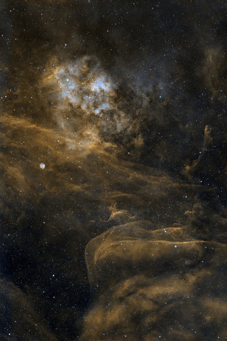 SH2-115 and SH2-116 are both features located within the rich tapestry of the night sky, significant in the realm of astrophysics and astronomical observations. These planetary nebulae, identified in the Sharpless catalog, showcase the stunning beauty and complexity of stellar evolution. SH2-115, known for its vibrant colors, provides insight into the life cycle of stars, particularly those nearing the end of their lives. In contrast, SH2-116 offers a glimpse into the processes of star formation and the interactions between gas and dust in space. Both nebulae are valuable for researchers and amateur astronomers alike, serving as captivating subjects for study and admiration, highlighting the dynamic and ever-changing nature of our universe. By observing these celestial objects, we deepen our understanding of cosmic phenomena and the intricate dance of creation and destruction that characterizes the life cycle of stars.